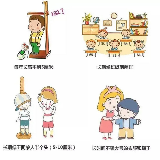 如孩子身高每年增长<5cm,或比同龄孩子明显长得快,或明显出现性发育情况,如女童7.5岁前出现乳房发育或10岁前出现月经初潮,男童9岁前出现睾丸增大,都应去医院了解是否存在生长激素缺乏或性早熟等情况。