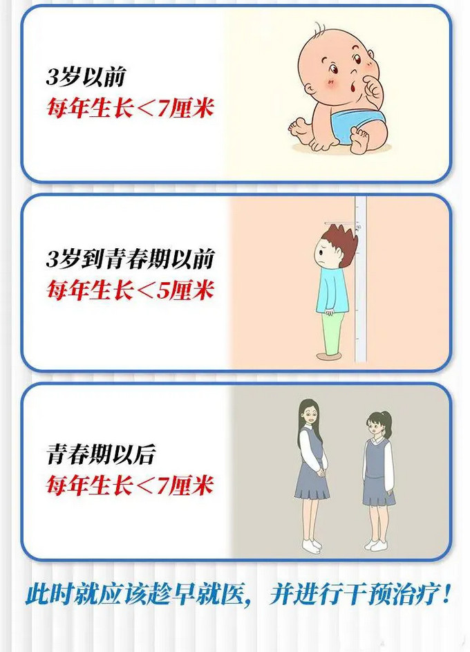 3岁以下的儿童每年身高增长应不小于7厘米;