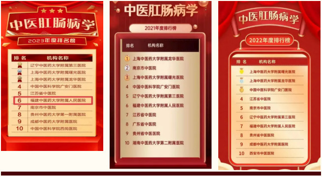 福建中医药大学附属人民医院(福建省人民医院)肛肠科创建于1954年,历经五代传承,得到蓬勃发展。近四十年来,在两代学科带头人国医大师陈民藩教授和福建省名中医石荣教授等带领下,建立起特色鲜明的闽派陈氏中医肛肠学术流派,构建“湿热论治、内外并治、以通为用、存体寡损、形神兼顾”的陈民藩学术思想精髓模式。是福建中医药大学博士、硕士授权点,有博导3名、硕导9名。学科先后获得“国家中医药管理局中医肛肠重点专科”、首批国家中医临床重点专科”、“国家区域中医(肛肠)诊疗中心培育单位”、“福建省中医肛肠病重点专科”、“国家中医优势专科”、“福建中医药大学特色学科”、“福建省中医肛肠与肛周创面修复临床医学研究中心”和“陈民藩国医大师传承工作室”、“闽派陈氏肛肠学术流派传承工作室”、“石荣福建省名中医传承工作室”等学科荣誉。学科有枯痔疗法、高位肛瘘塑形挂线技术、脱垂痔吻合器大“C”技术和紫白膏、黄白胶囊等独特专科技术和专科制剂;近五年承担了3项国家自然基金项目和十余项省部级科研项目的研究;“枯痔疗法”、“陈民藩教授肛瘘诊疗技术研究”等项目先后获国家级、省部级科技成果奖;学科遵循常见疾病、少见病及疑难病分类分层诊疗模式,践行着诊疗规范制定者、疑难疾病目的地的目标。在中华中医药学会发布的中医医院专科(肛肠专科)学术影响力评价研究中连续三年名列前十,连续四年获艾力彼"最佳临床专科"。是国家中医肛肠疾病诊疗的头部学科和福建中医肛肠病临床、科研及教学的“龙头”。