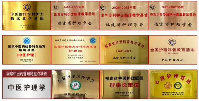 福建中医药大学附属人民医院(福建省人民医院)中医护理学是国家临床重点专科(中医专业)、国家中医药管理局重点学科,国家中医药管理局十二五重点培育项目,国家中医药优势特色教育培训基地,全国护理科普教育基地,国家中医优势专科建设单位,国家卫健委、国家中医药管理局优质护理表现突出集体。中华护理学会中医、中西医结合护理专业副主任委员单位,中华中医药学会护理专业委员会副主任委员单位,中国中医信息学会中医护理分会副会长单位,福建省中医药学会、福建省护理学会中医护理专业委员会主任委员单位,中华护理学会中医治疗专科护士临床教学基地,福建省中医护理、康复、老年、糖尿病专科护士临床教学基地,福建省护理科普教育基地。医院的护理工作始终走在全国中医护理的前列。