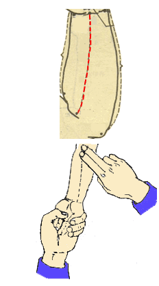 2. 用拇指指腹从肘推向腕
