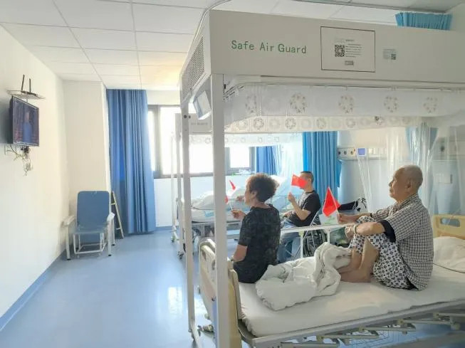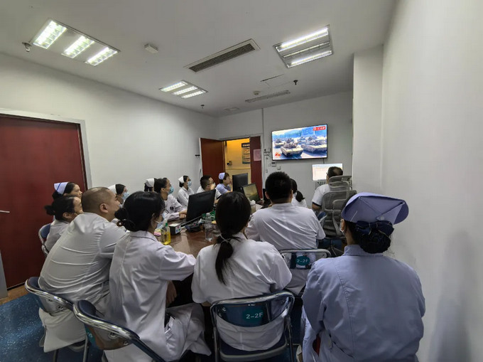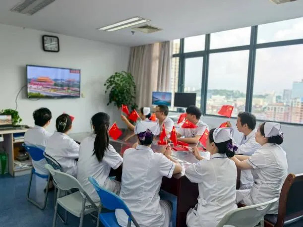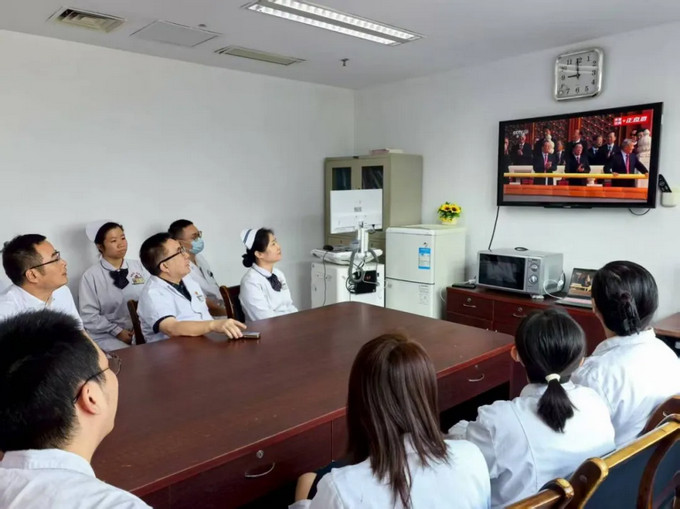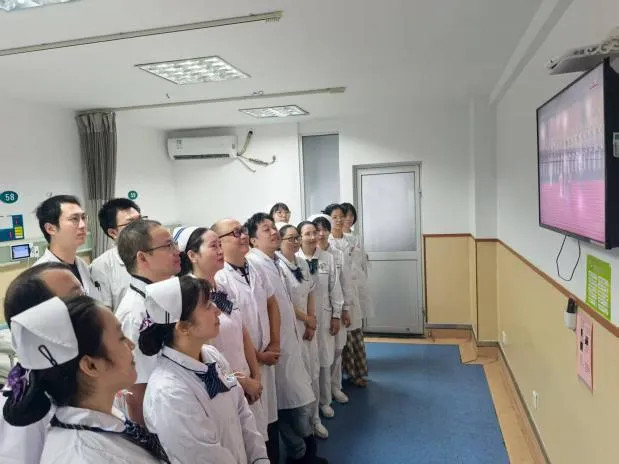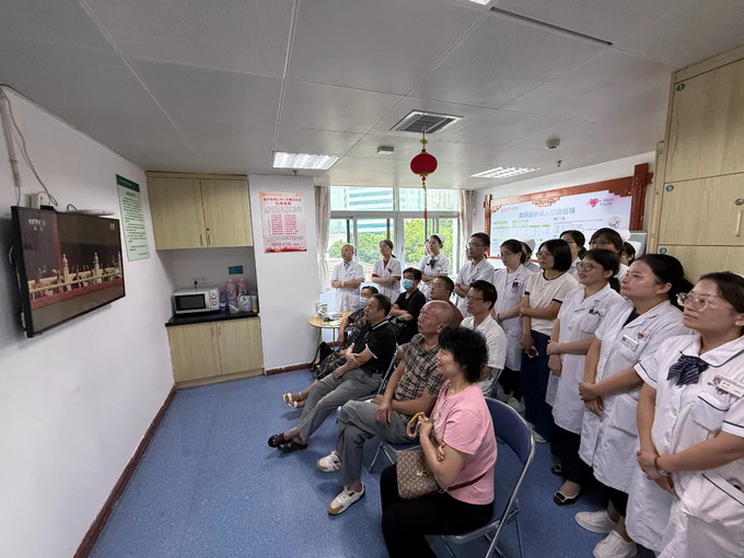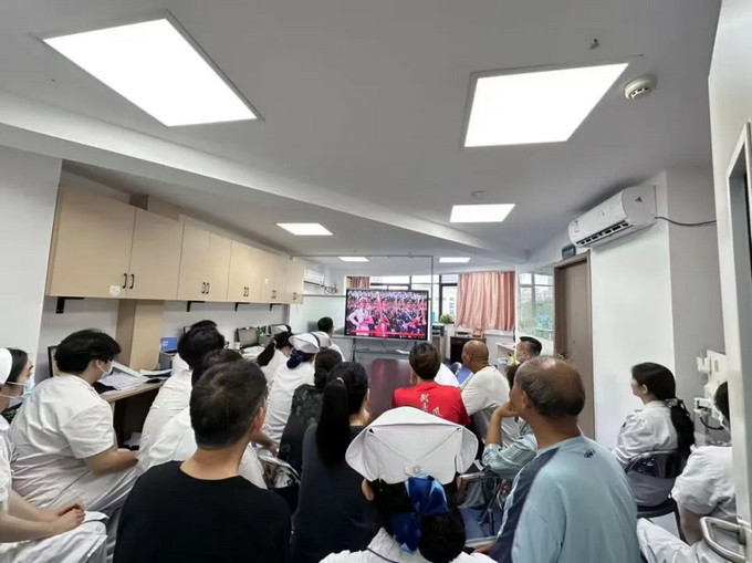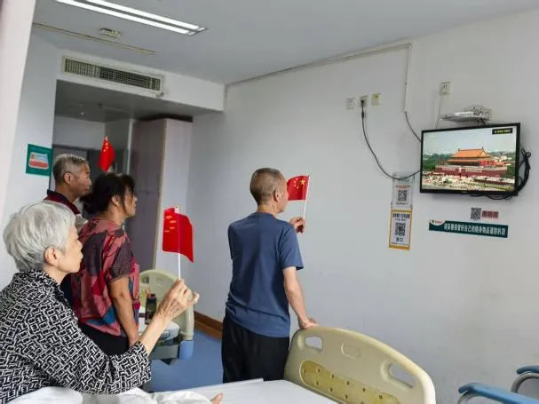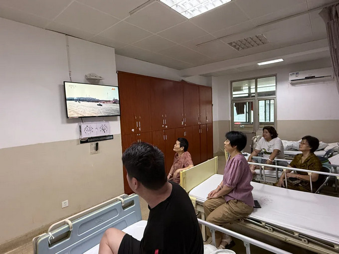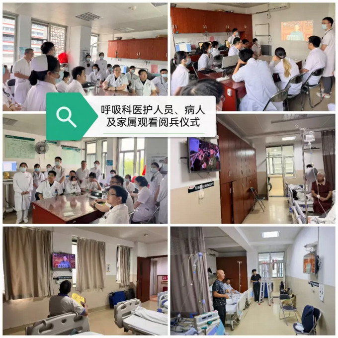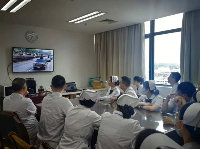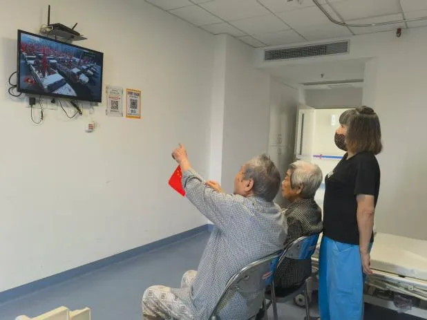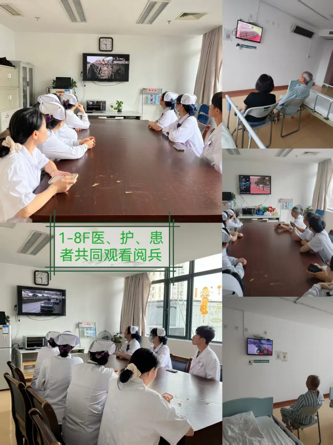 各病区示教室设分会场,医务人员忙中抽闲围坐观播;病房内,患者或在家人陪伴下早候电视前,或虽身体虚弱仍强撑精神紧盯屏幕。此刻,医院不仅是诊疗场所,更成为传承民族精神、凝聚爱国情怀的港湾。
