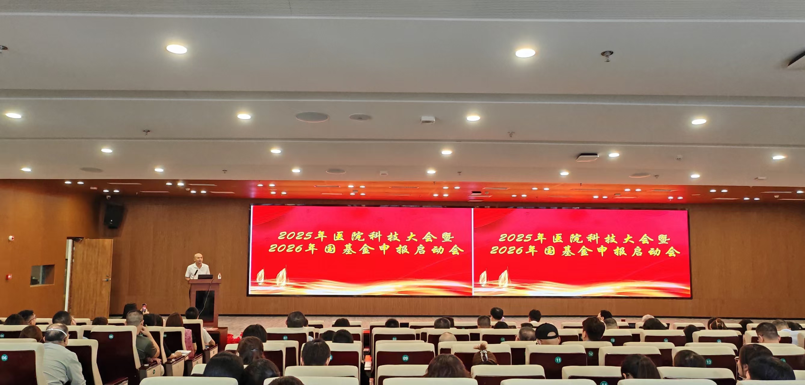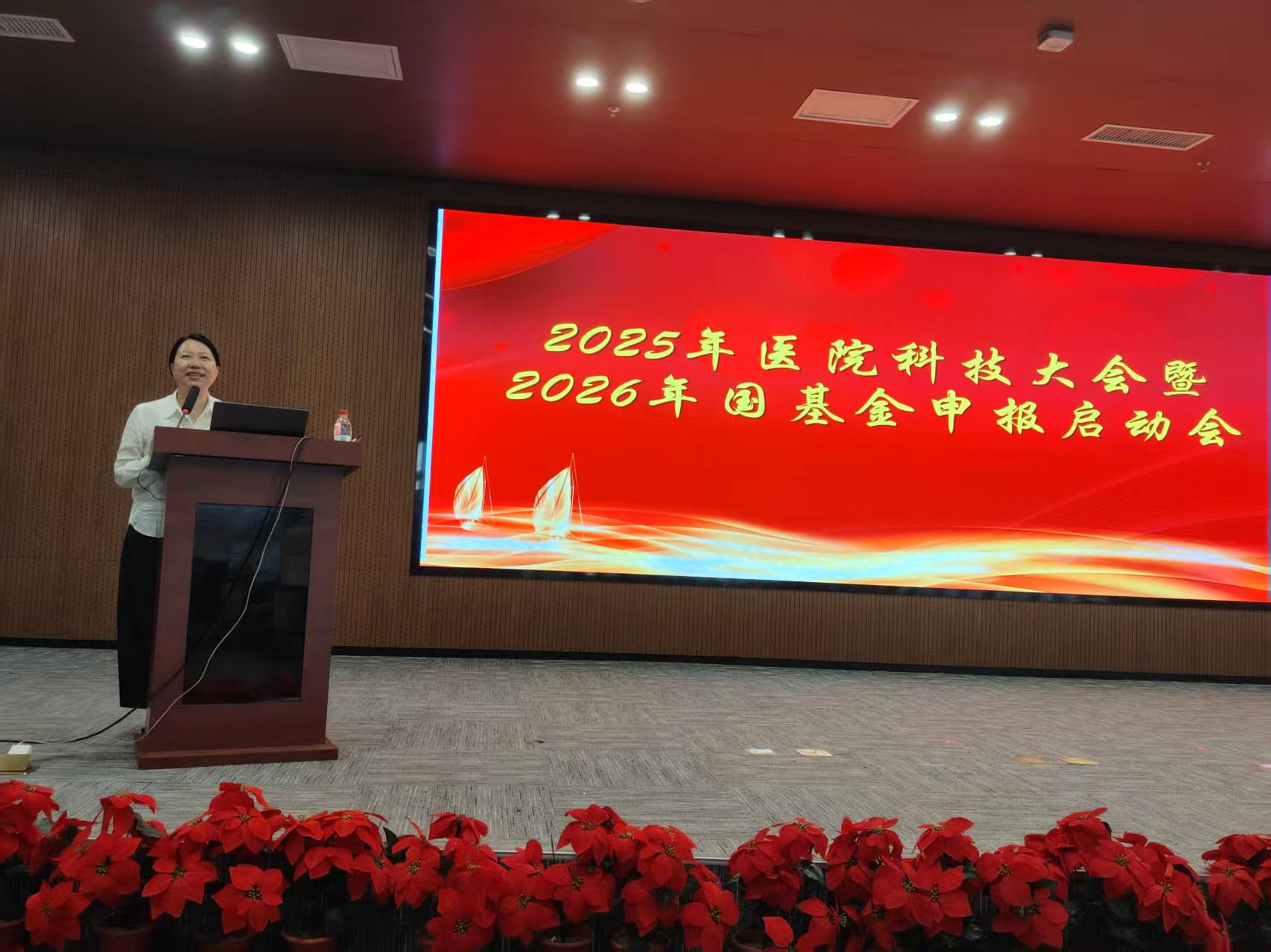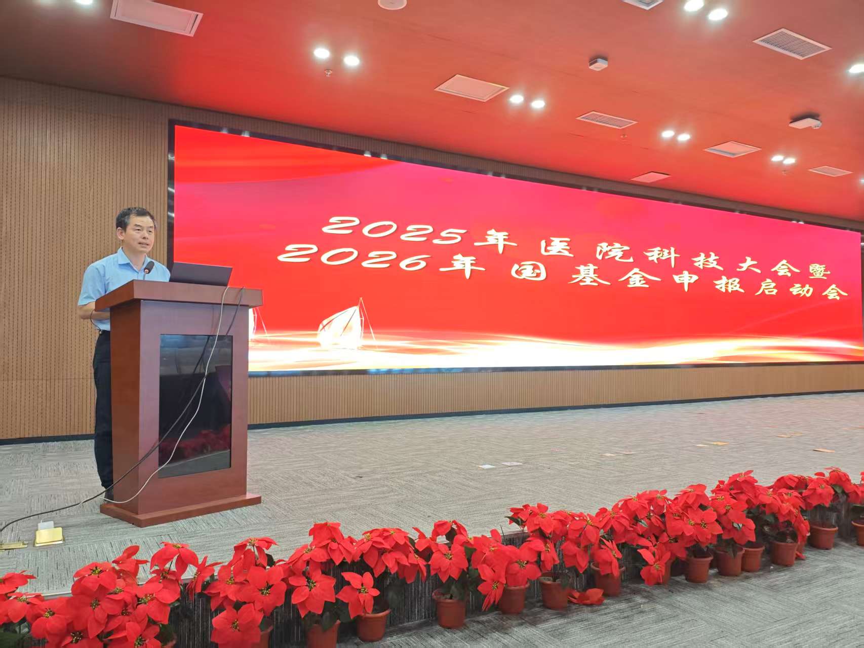 为全面提升医院科研核心竞争力,扎实推进2026年度国家自然科学基金申报工作,我院于9月15日隆重召开2025医院科技大会暨2026年国家自然科学项目项目申报启动会。医院全体领导班子参会,会议由陈武进副院长主持,福建中医药大学原科技处处长洪振丰教授、中西医结合学院黄彬副教授受邀作专题报告。全院中层干部、科研骨干、新入职博士及行政管理后备人才等100余人参会,共绘科研发展蓝图。
