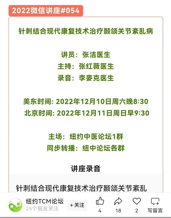 2022年“纽约中医论坛”线上讲课
