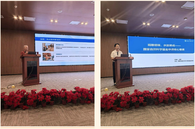会议特邀两位资深专家作专题指导。洪振丰教授以《2026国自然申报的思考》为题,用数据精准分析了2025年中医药领域中标项目特征及研究热点,预判2026年“临床需求导向”“多学科协同攻关”“青年人才托举”三大趋势,并结合本校中标案例,提出“早谋划、强基础、抓细节、重协作”的决胜路线图。他多次提到青年高层次人才是科技发展的动力,鼓励青年科研人员:“科研如航海,既要仰望星空锚定方向,更要脚踏实地打磨‘船体’。”