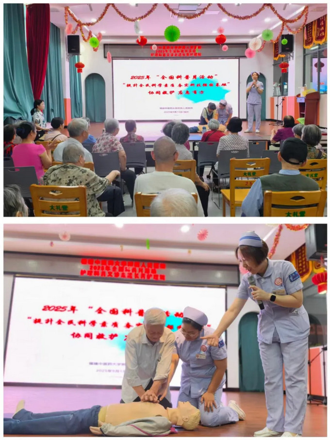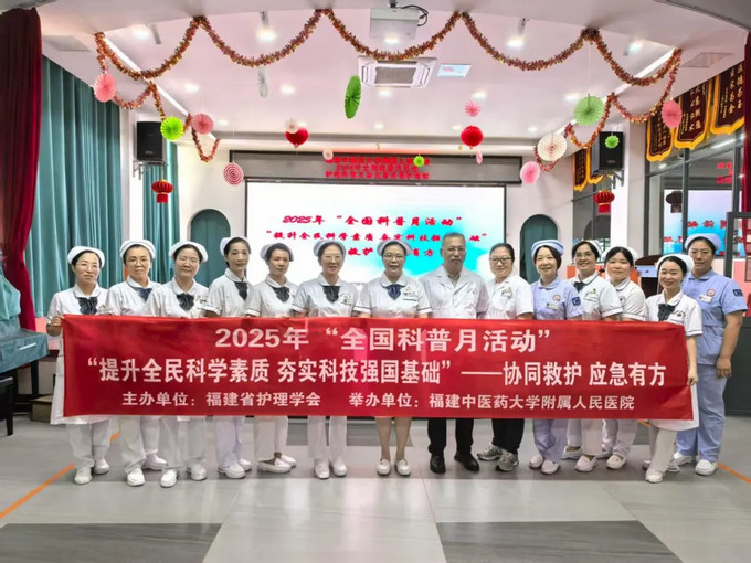 为响应《中华护理学会关于开展2025年全国科普月活动的通知》,2025年9月15日上午,福建中医药大学附属人民医院组织医护科技工作者深入基层,走进长青颐养园,开展以“提升全民科学素质 夯实科技强国基础——协同救护 应急有方”为主题的科普类义诊活动。本次义诊由医院护理部危椠罡主任护师、黄锦华副主任护师,传统内科林国清主任医师、内分泌代谢病科郭芳副主任医师等医护专家团队代表组成,旨在通过科技赋能科普,中医助力老年健康,为颐养院的百余名长者们送去健康和关怀。