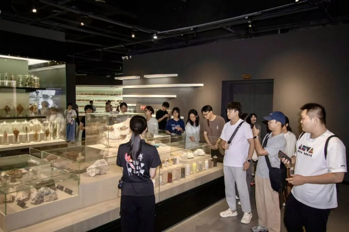 在药材展区,同学们认真观察了代赭石、紫石英、自然铜等矿物药材,以及墨旱莲、枸杞子、熟地黄等植物药材,还有鹿茸片、海狗肾、土鳖虫等动物药材。讲解员从性味归经的角度为大家讲解了各类中药的基本特性与临床应用,加深了大家对中药资源多样性和药用价值的认识。