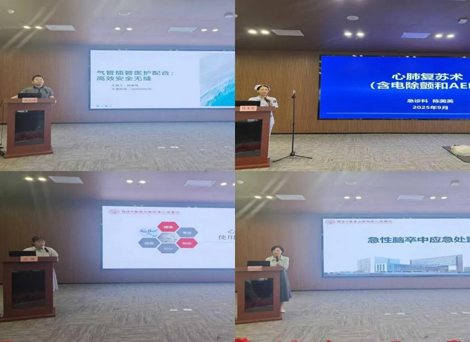 理论培训模块,着重强化护士在突发事件中的应急处置核心能力、抢救相关的伦理法律知识及文书规范,强调救治过程中生命安全保障与职业规范的双重遵循;同时针对过敏性休克、急性肺栓塞等常见急危重症的救治要点与气管插管配合进行系统讲解,夯实理论基础。技能培训模块,重点演练CPR(含除颤与AED使用)、气道异物梗阻处理、气管插管配合及呼吸机故障处理等操作,提升操作的规范性与时效性。