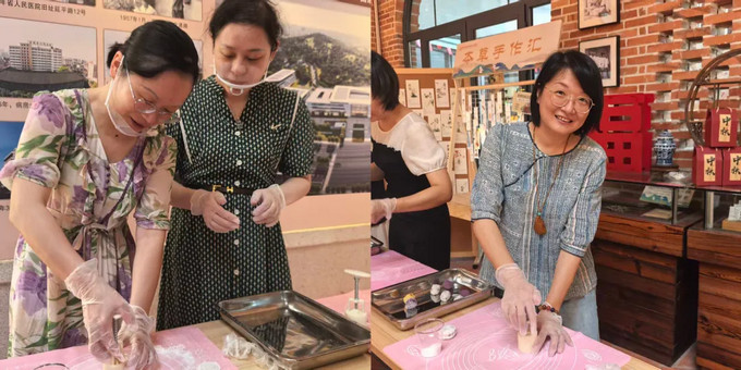 活动现场,平日里手握手术刀、处方笔的医务工作者们,此刻纷纷化身“糕点师傅”,在欢快的音乐声中开始了制作。揉搓饼皮、包入馅料、模具压花……大家配合默契,动作从生疏到娴熟,不一会儿,一个个造型精美、饱满诱人的月饼便在巧手中诞生。现场弥漫着香甜气息,温馨的氛围让每个人都感受到家一般的温暖。