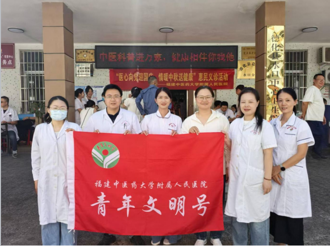 2025年9月28日,中秋国庆双节前夕,福建省人民医院门诊西药房(福建省直级青年文明号集体)科普小分队驱车赴德华县水口镇卫生院,开展“医心向党迎国庆,情暖中秋送健康”惠民义诊,将三甲医院药学服务送到山区群众身边。