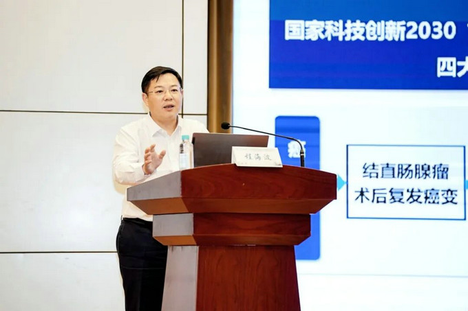 “岐黄学者”南京中医药大学校长程海波教授作题为《结直肠癌的中西医结合全程防治策略与实践》报告。