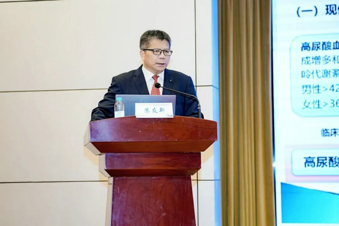 “岐黄学者”福建中医药大学校长苏友新教授作题为《“内湿致痹”理论指导下的高尿酸血症及痛风中医药防治》报告。