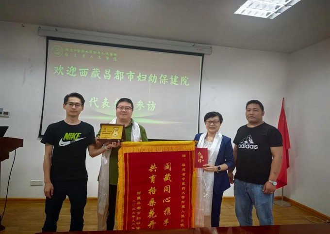 2025年10月20日,西藏昌都市妇幼保健院代表一行专程来访我院,将一面饱含深情的锦旗赠予我院,以表达对我院长期无私援助的诚挚谢意。同时,代表们还为徐永红主任送上了荣誉勋章,致敬其跨越山海的医者担当。我院施婉玲副院长及相关职能科长参加了仪式。