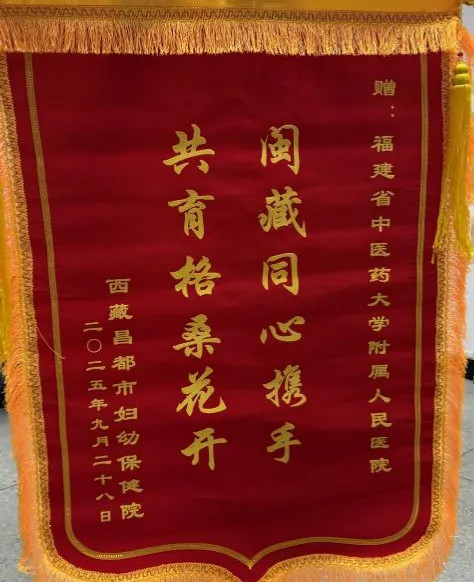 一面锦旗,一份荣誉,更是一份沉甸甸的期许。它承载着雪域同胞的深情厚谊,也浓缩了我院援藏工作的阶段性成果。展望未来,我院将把这份肯定转化为前进的动力,以增进西藏人民健康福祉为核心任务,精准对接当地需求,深化援藏工作内涵,推动中医药与西藏医疗卫生体系深度融合,让源自八闽大地的中医种子,在高原沃土中生根发芽,绚烂绽放。