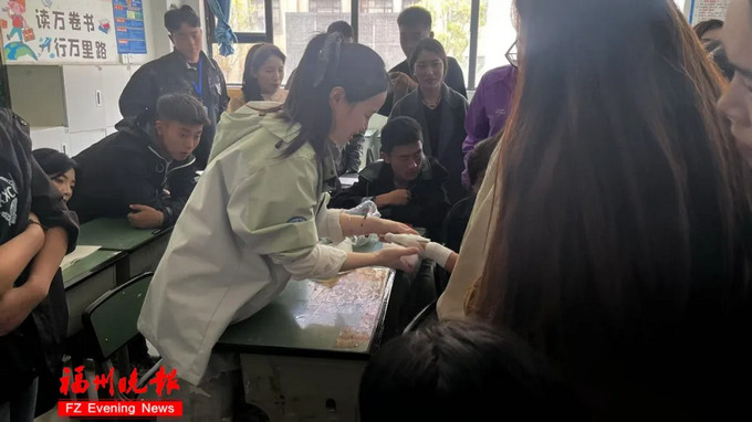 她是“雪莲花”询问救助中心的志愿者,进行心理疏导工作,关注当地未成年人心理健康;她担任全国对口援藏30周年成就展福建展区的讲解员,宣传福建的文化、援助的成就;她时常深入基层义诊,为群众、师生培训急救知识……一次“跨域千里”的医疗保障任务中,她护送手足畸形的藏族患儿到福建手术。旅途中,她当起一名藏族小女孩的“临时妈妈”,全程照顾她。飞机上,尽管爷爷在身边,小女孩依然选择依偎在“临时妈妈”身边,安心入睡。术后,从女孩爷爷发来的视频里,廖欢欢看到孩子从不能走路,到欢快跳舞,心里满是成就感。