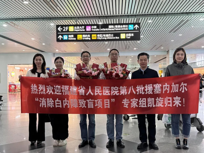 2025年11月11日,我院选派的福建省第八批援塞内加尔“消除白内障致盲项目”专家组组长潘铭东及成员郑永征、李金龙3位同志圆满完成为期68天的医疗支援任务顺利返闽。我院党委副书记、院长徐顺贵一行专程赴机场迎接,向载誉归来的专家们表示热烈欢迎,并致以崇高敬意。