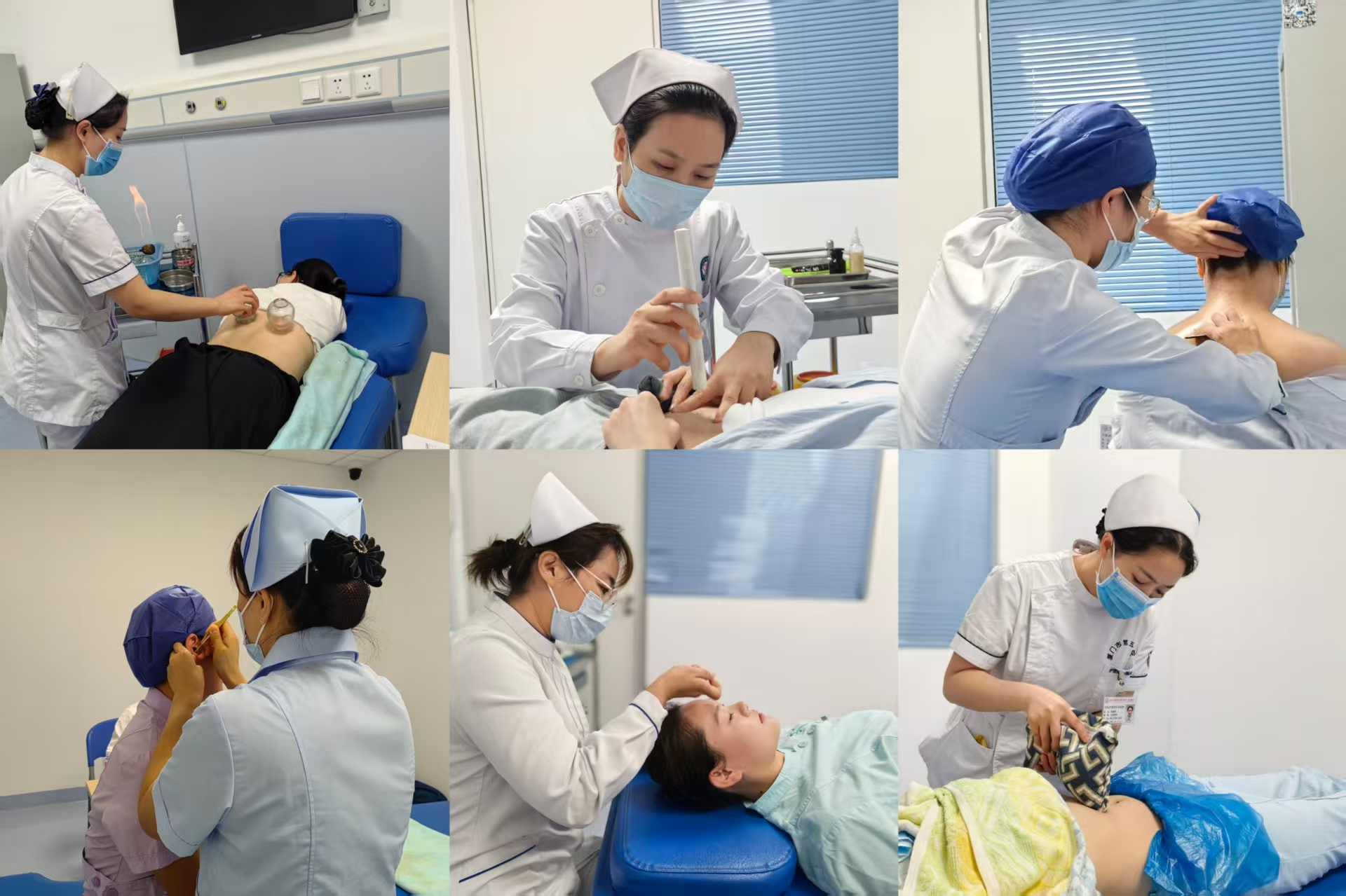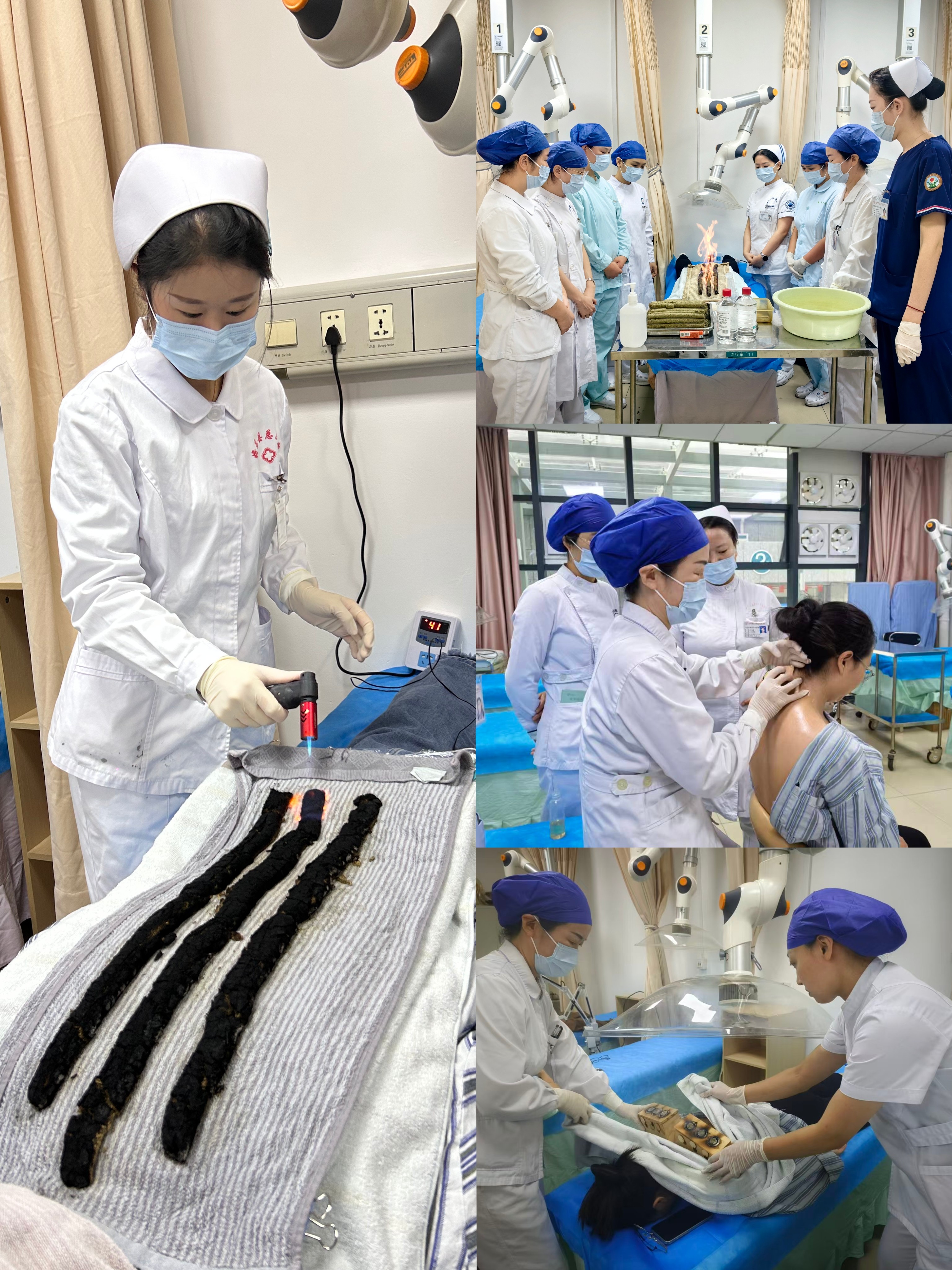 培训围绕六大常见症状辨证施护、多项常用及特色中医护理技术开展系统训练,构建了科学、规范、实用的临床教学体系。在为期四周的培训中,学员通过轮转科室、参与实操、跟师学习等方式,全面提升中医辨证施护能力与专业技术水平。学员深入参与优势病种护理方案实施,开展疼痛、失眠、便秘等六大症状的中医辨证施护,并完成艾灸、拔罐、刮痧等多项中医技术的临床实践。在“一对一”带教的指导下,做到“技精于练、知行合一”。