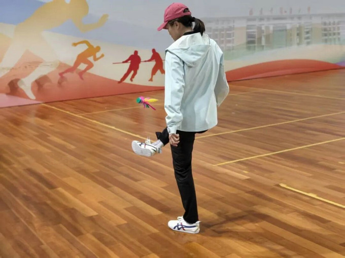 教工女子组踢毽子:
