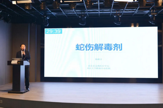 ▲重庆大学附属中心医院杨树青主任医师作《蛇伤解毒剂》专题讲座