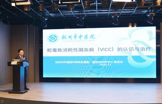 ▲杭州市中医院袁丞达主任医师作《蛇毒致消耗性凝血病的认识和治疗》专题讲座