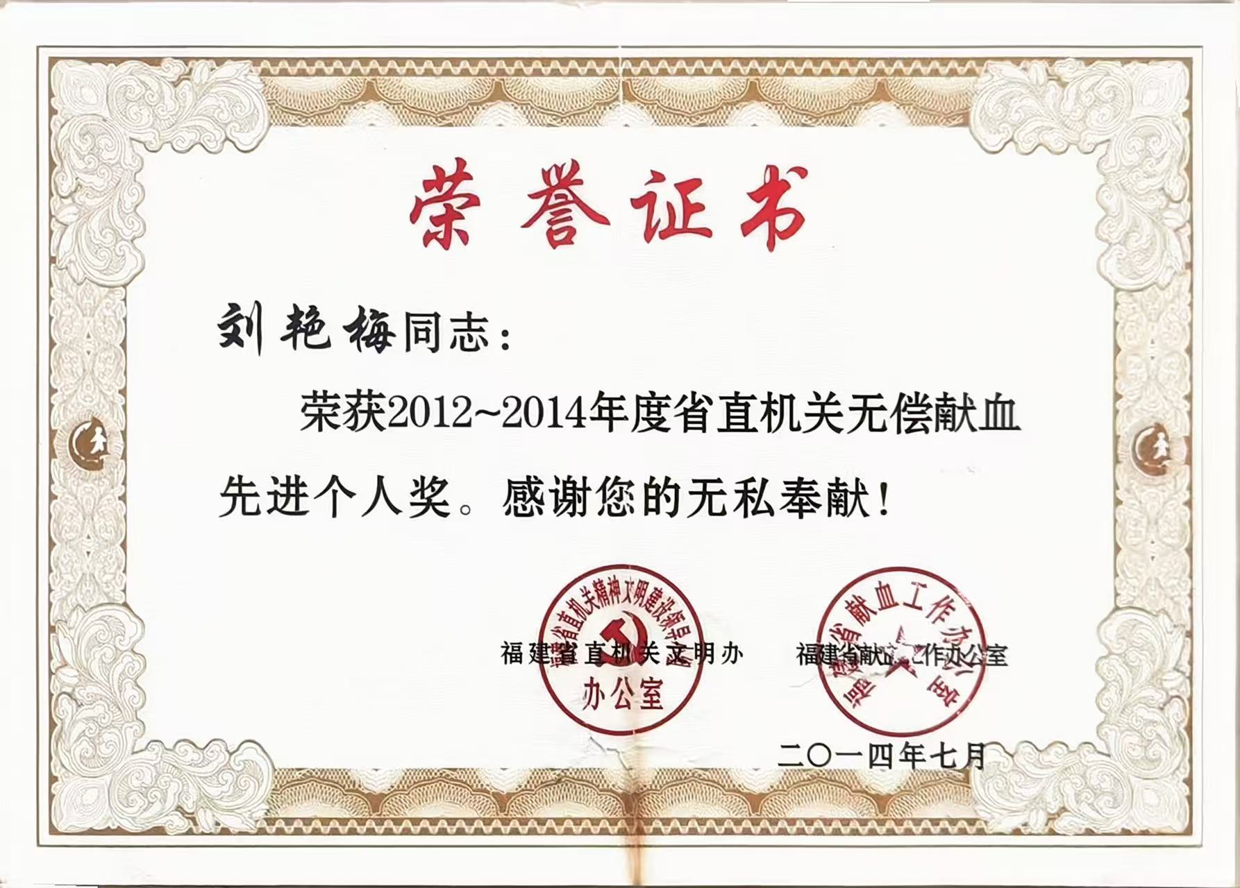 第一次献血是2010年,一次周末逛街的路上,偶然遇见了福建省血液中心的献血车,还是在校生的刘艳梅,心里涌起一股热血救人的念头,第一次挽起袖子,捐献血液400ml,拿到献血证的她,激动不已。自此便与无偿献血结下了缘分。参加工作后,她积极参与医院组织的“职工献血活动”。休息之余,曾多次前往血液中心捐献成分血。一滴热血,一份担当。刘艳梅用日复一日的坚持,诠释着“人道、博爱、奉献”的红十字精神,用平凡的善举,为生命筑起一道温暖的防线。医者仁心,热血同行,她不仅身体力行捐献热血,还积极普及献血知识,带动身边同事、亲友加入献血队伍,用行动诠释“白衣天使”的双重使命。