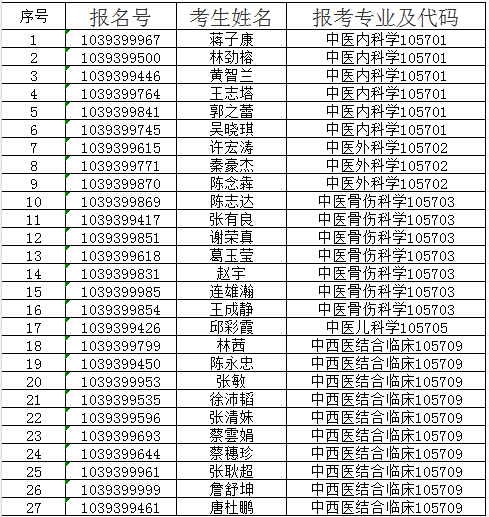 福建中医药大学第一临床医学院2026年“申请考核制”攻读博士学位研究生复审入围名单的公示