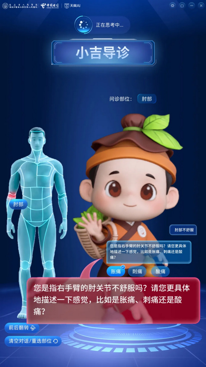 很多人看病都有过“挂错号”的烦恼,挂错了科室白排队、白跑腿。小吉就像有“火眼金睛”,能根据你的症状精准推荐科室,它的“最强大脑”是基于医院自主研发的“吉祥福医”中医大模型,能像医生一样“思考”: