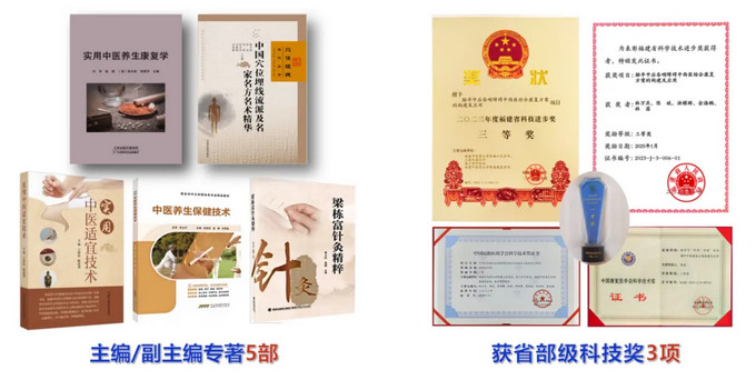 荣誉成果:获中国民族医药学会科技进步奖一等奖、中国康复医学会科学技术奖二等奖和福建省科学技术进步奖三等奖(均排名第2);以第一/通讯作者在《Stroke Vasc Neurol》《Exp Cell Res》《Neuroscience》等期刊发表论文30篇,获国家专利授权13项、计算机软件著作权7项,主编或副主编专著5部。