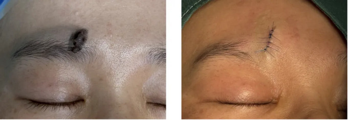 案例2: 眉部黑素细胞痣术前、术后对比