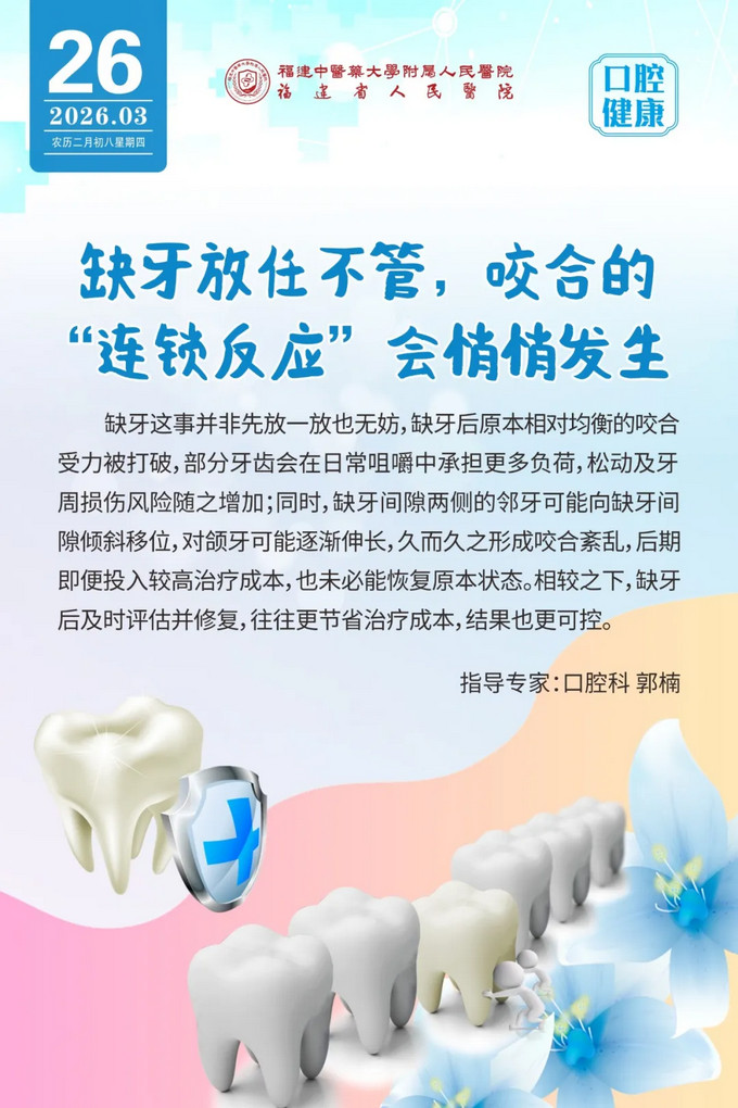 健康日历 | 缺牙放任不管=埋下健康隐患!口腔科专家教你正确应对