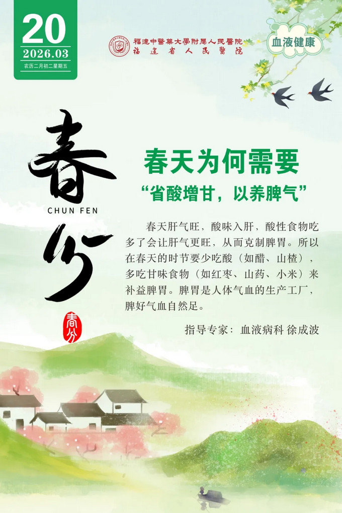 健康日历 | 今日春分,省酸增甘,以养脾气,血液病科专家教你春日如何养脾胃