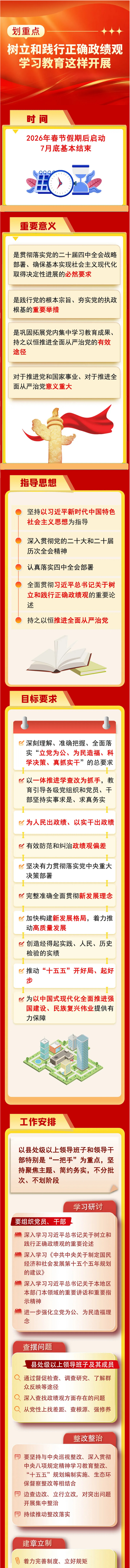 整理自《中办印发〈通知〉在全党开展树立和践行正确政绩观学习教育》《中央党的建设工作领导小组召开会议 研究部署树立和践行正确政绩观学习教育工作》