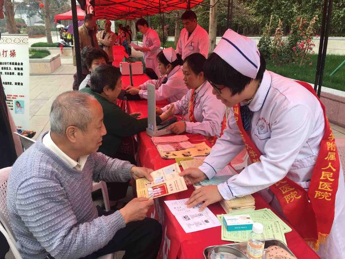 护理人员现场为居民测量血压