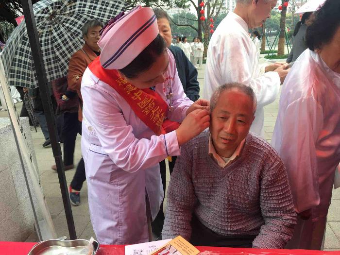 现场为多名居民进行耳穴压豆