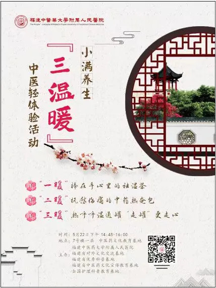 为弘扬中医药文化,向群众普及中医养生保健方法,深入践行习近平总书记关于中医药工作重要论述和重要指示精神,2024年5月22日下午,福建中医药大学附属人民医院在医院吉祥中医药文化馆,开展了一场小满养生“三温暖”中医轻体验活动,吸引了近百位群众前来参加。