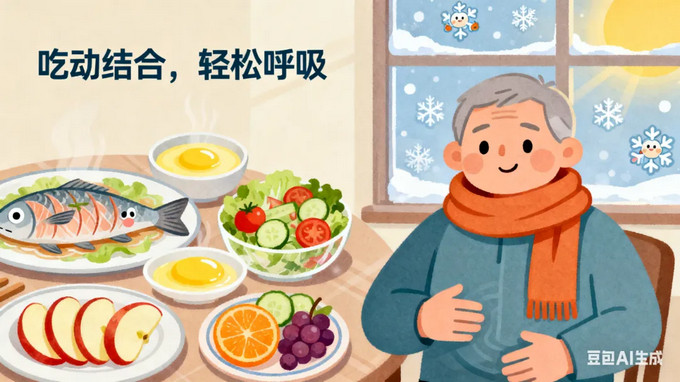 对于慢阻肺朋友来说,寒潮来袭,冬至时节,呼吸不畅加重、能量消耗大、活动耐力下降是常见问题。因此,我们的调理核心就在于:通过“吃”来补充元气,养肺平喘;通过“动”来训练呼吸,增强肺功能。